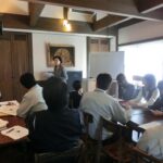 庭のしだれ梅が満開の中執り行われた今回(3月11日)の講座のテーマは『品格あるビジネスマナー』である。パナホーム兵庫からも、アドバイザーを中心に6名の女子社員が受講した。