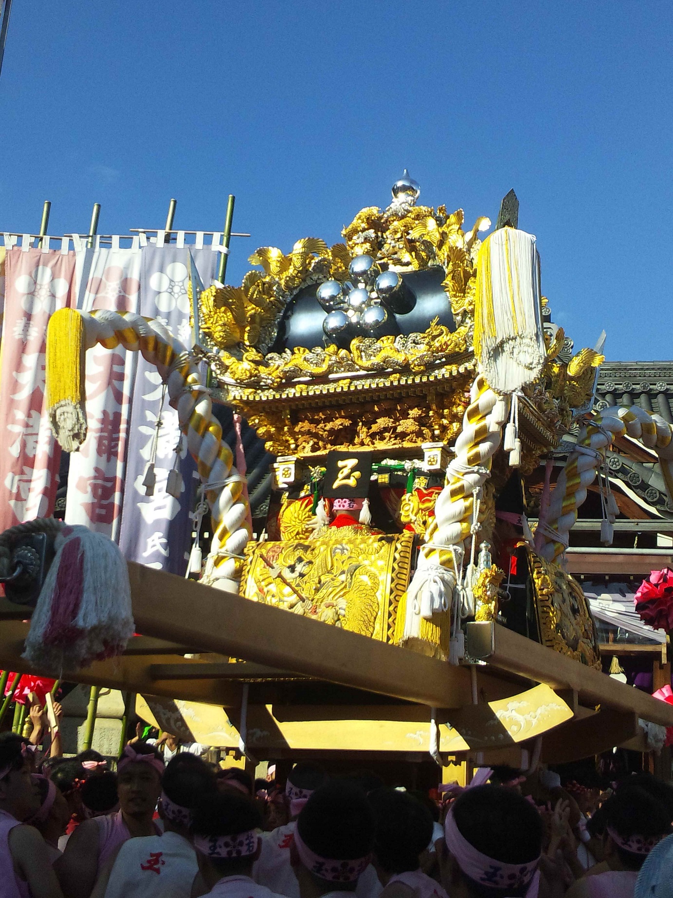 先ず、8日・9日は恵美酒宮天満神社と浜の宮天満宮を中心とした飾磨地区の祭りを皮切りに、14日・15日は全国的にも知られている、松原八幡神社の所謂《裸祭り》である。別名灘の喧嘩祭りとも言われており、勇壮で華やかな祭りである。旧灘7ヶ村、東山・木場・松原・八家・妻鹿・宇佐崎・中村が繰り出す屋台は、豪華絢爛で我々の眼を楽しませてくれる。