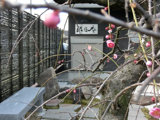 志澤塾の枝垂れ梅の蕾も膨らみ、三つ四つ花を咲かせている。甘酸っぱい香りが辺りに漂っている。