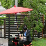 昨夜からしとしと降り続いていた雨が、ようやく午前9時前に上がり野点が出来る環境が整った。雨天なら室内で立礼棚を組んで執り行う手はずになっていたが、なるべくなら屋外催したかったので、安堵の胸を撫で下ろした。