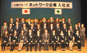 各グループ全社員が集まり、姫路の文化センターで入社式を執り行うのが恒例となっている。