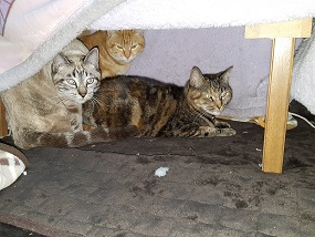 ホットカーペットを家内が購入し、炬燵カバーをしているが、夜はその中に入り寝ているようだ。