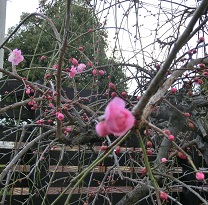 今年も波裡庵を愛でるように、枝垂れ梅が開花した。