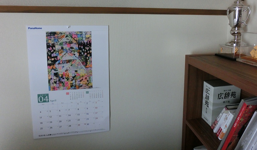 私の身の回りは、何処に行ってもカレンダーに囲まれている。もちろん、毎年行われる『こどもの絵画展』で選ばれた優秀作品を使用したカレンダーである。いつごろからであったか定かではないが、こども展の作品を使い始めてかれこれ20年近く経過したと記憶している。最初は、パナホームからカレンダーを購入してお客様へ配っていたのだが、こどもの絵を使ったオリジナルカレンダーを制作したいと思い、企画会社から見積りをとってみた。それほど高額にではなく、むしろメーカーのカレンダーより低価で制作できることが判明した。早速、企画会社と打ち合わせを行い、それまでに優秀作品は保護者の同意を得て収蔵していた(お礼は図書券)経緯もあり、カレンダーに掲載する作品に事欠くことはなかった。
