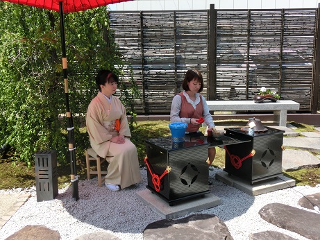 3年位前から私の知り合いに波裡庵を利用して、社員を対象にお茶のお稽古をお願いしている。当初より増えて今は9名になっている。そのうちの4名が今年の野点でお点前を初披露する事になった。デビューである。