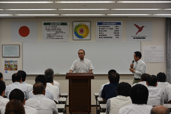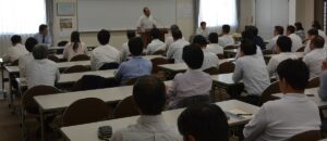 その記念コンペで岡田氏と同組でラウンドをした。それがきっかけで親しくなり、志澤塾での講座をお願いしたところ快く承諾していただき、今回の運びとなった。人数の関係で、塾には入りきらないのでパナホームの4階大会議室で執り行った。
