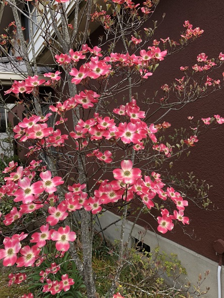 今年は我が家の《ハナミズキ》の方が早く鮮やかに咲いた。毎朝、愛しの『ハナミズキ』に見送られて玄関を出る。