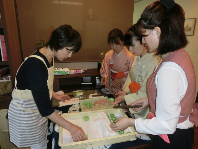 初釜はグループ全社員が対象で、花びら餅を大体250個ほど準備する。野点と炉開きは塾生、講師、グループの幹部社員、
