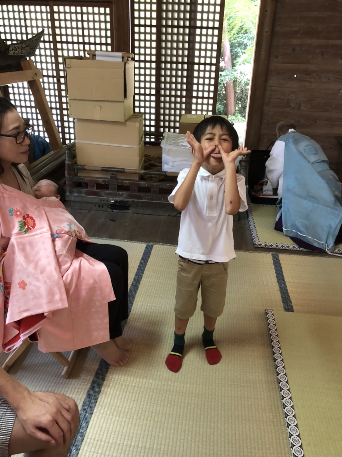 5歳になるやんちゃ盛りの倫太朗は我々の心配をよそに、神事が始まるや急に神妙になり無事玉串奉奠も終えることが出来た。褒めてやると「やるときはやる」との事。