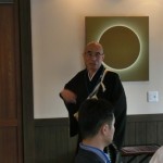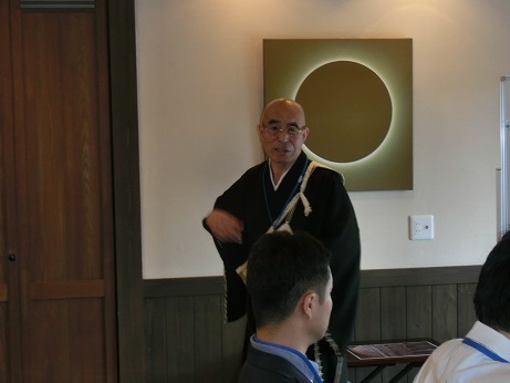 先生のご法話の前に、石垣明貴杞女史に文字について、学術的見地から講義を受けた。彼女は中国におけるもっとも古い亀甲獣骨文字(紀元前1300年殷時代の文字)の研究を含め、中国各地の言葉、インドに纏わる言語、その他ラテン語を筆頭にヨーロッパの文字を合わせて8か国語を操ることが出来る天才的語学力の持ち主である。元来文字は神にお伺いを立てた占いの言葉であり、神からのお告げとして使用された。蔡倫によって紙が発明されるまでは、文字は亀の甲や木簡に記されていたが紙が発明されてから、文字は爆発的に発展をとげ、様々な経典や辞書などが作られるようになったのである。しかし中国という国は支配者が変わるごとに文化も含めたすべてを否定する特性があり、その文献の殆どは残存していない。毛沢東の文化大革命も中国の特性を顕したものとしてうなずけるところである。