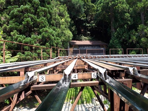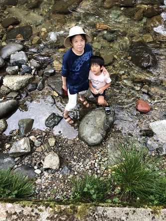 受付で取り敢えず4人分の食券を買い、係の人に手渡す。その人の案内で席が4人分用意された。待つこと数分。20メートルくらい前方の樋から、氷ノ山からの湧水に乗って真っ白なそうめんが流れてくる。それを箸ですくいながらお出汁につけて頂く。自宅で食べる素麺よりもおいしく感じてしまう。倫太朗の燥ぐ様子は尋常ではない。一人前はあっという間に平らげて我々も、もう一人前追加したが、それでも足らずに倫太朗だけはさらにもう一人前を追加した。食べ終えてから倫太朗と家内は谷川に下りていき水遊びを楽しんでいた。我々が帰るころにはたくさんのお客で賑わい行列が出来ている。