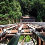 音水湖(引原ダム)を左手に見ながらS字カーブを曲がり、そこを通り過ぎると宮中の名物素麺流しのお店が目に入ってくる。そこから7~8分ほど行くと右手に《滝流しそうめん》の幟が確認できた。そこは鳥取県との県境に近い位置にある。