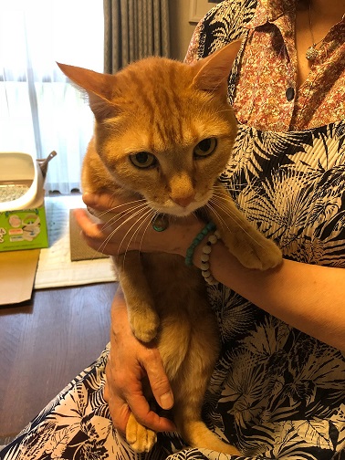 ところが3か月ほど前の定期健診で《アン》に肝機能障害が見つかり投薬していたが、ほかの2匹と比べると体重も減り、痩せた体系が目立つようになったので、7月の連休辺りから我が家で昼の間だけ預かっている。朝7時過ぎに事務所にアンを連れに行き、夕方6時ごろに元の部屋に戻すのである。我が家では、肝臓に負担がかからない食べ物を与え、私達がDr斉藤からいただいている細胞を活性化する『サプリ』を、我々が飲む4分の1の量を与えている。