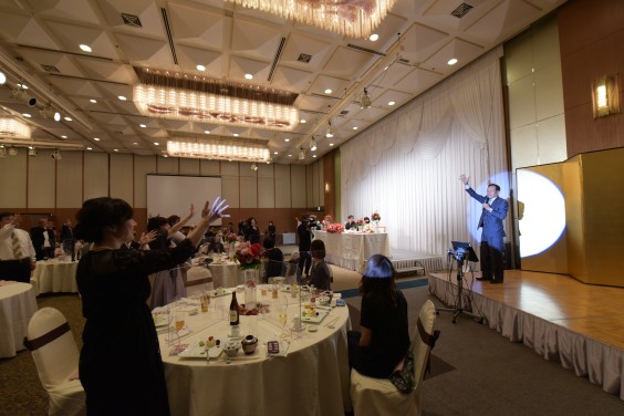 披露宴での与えられた時間はじゃんけんゲームも含めて<30>分。いやがおうにも会場は盛り上がり、特にじゃんけんゲームは賑わった。その間所要時間25分。司会者に、お褒めの言葉を頂いた。新郎の友人であるs君の《糸》・ウィーンからの長女達のオペラ・その後厳粛なうちに閉会した。
