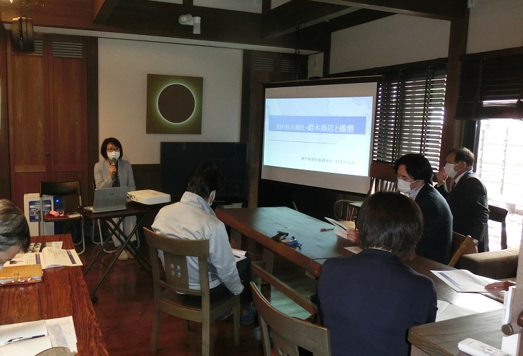3月の志澤塾の講座はD氏からの縁で、神戸新聞姫路本社代表の村上女史にお願いをした。神戸大学経済学部を卒業後、神戸新聞に入社され一貫して経済畑を歩まれ、論説副委員長などを経て、現姫路本社代表に就任される。記者時代に鈴木商店に興味を持たれ数人のスタッフと共に調査研究を重ね、その結果神戸新聞に連載し、それを纏め上げ《遥かな海路 巨大商社鈴木商店が残したもの》として書籍化された。