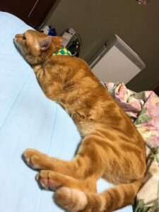 ふと目を遣るといつの間にか、半同棲中の猫ちゃん《アン》が私のベッドの横に寝そべっていた。頭を撫ぜたり腹を触ったりしながら過ごしているうちに、知らぬ間に二人とも寝込んでしまっていた。家内の(桃食べてですか?)と言う声で現実に引き戻された。至福の2時間ほどを愛猫と共有した。自宅待機もたまにはしてみるものだと思う、ワクチン接種の一コマである。