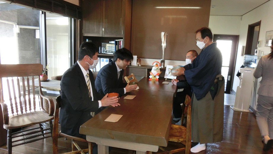 今年は2年ぶりに、少々人数制限をして初釜を執り行った。お茶室に入る人数も3人と制限し、以前は全社員が対象だったが、課長以上の役職者を招待した。