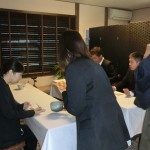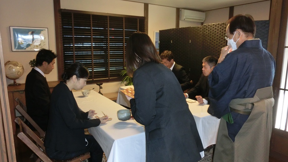 最初の一席目は私がお点前をした。今年は先生とも相談し「丸卓の総飾り」というお点前で点てさせて頂いた。お菓子は勿論《花びら餅》である。一緒に習っている女子社員がそれぞれ3席ずつお点前を披露した。私は例年の如く、席入りが出来ない社員たちはテーブル席で何人かに分散して座ってもらうのだが、その社員たちにお茶とお菓子をふるまいながら軽口を交え、花びら餅の由来やお抹茶の飲み方などを説き、お茶碗が何焼きであるかを話すのである。 当初の予定を少しオーバーしたが、無事終わることが出来た。今年も新入社員4名が、お菓子を運んだり、お抹茶を出したり、洗いものをする裏方で手伝ってくれた。簡単なリハーサルをしただけだったが無難にこなしてくれ、ずいぶん手助けになった。