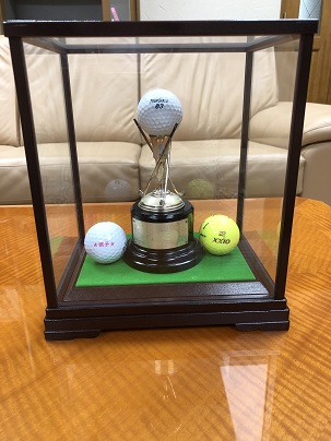 注2 今一つの写真は私がこれまでに2回のホールインワンを達成したのであるが、その時の記念ボールである。それに今回加えたのが植手桃子のサイン入りボールである。
