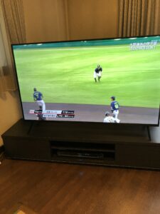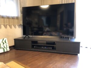 10日ほどして設置に来てくれた。今使っているテレビ台では小さすぎて使えないので、台も新しく依頼した。我々夫婦ともに超アナログ人間なので、台の組み立ても、ビデオやCSチャンネルとの接続もお願いした。