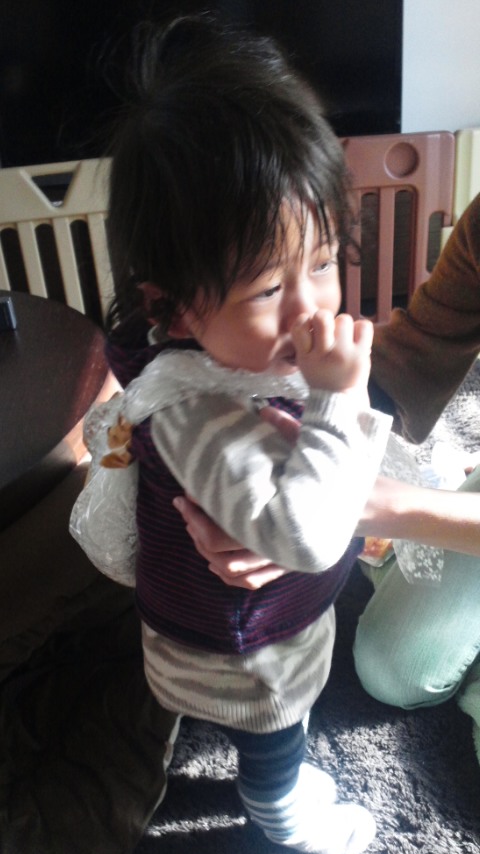 倫太朗はやっと伝え歩きが出来る状態であるから、無論1キロもある餅を背負って歩くことは出来ない。最初は嫌がっていたが、観念したのか背負って這い出した。