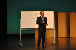 最後にグループの目指す方向について私が話した。『長期利益』『FA』制度、さらに今後進めていく社内研修制度『ほめ育』についても言及した。