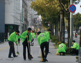 もう15年近く継続していると思うが、月の初め午前8時より姫路駅前からバイパスまで約2kmの間を、パナホーム兵庫の全社員でグリーンのパーカーを着用して清掃している。一つ目の目的は勿論駅南大路が綺麗になることである。二つ目は、パナホーム兵庫のマインドシェアを高めることである。