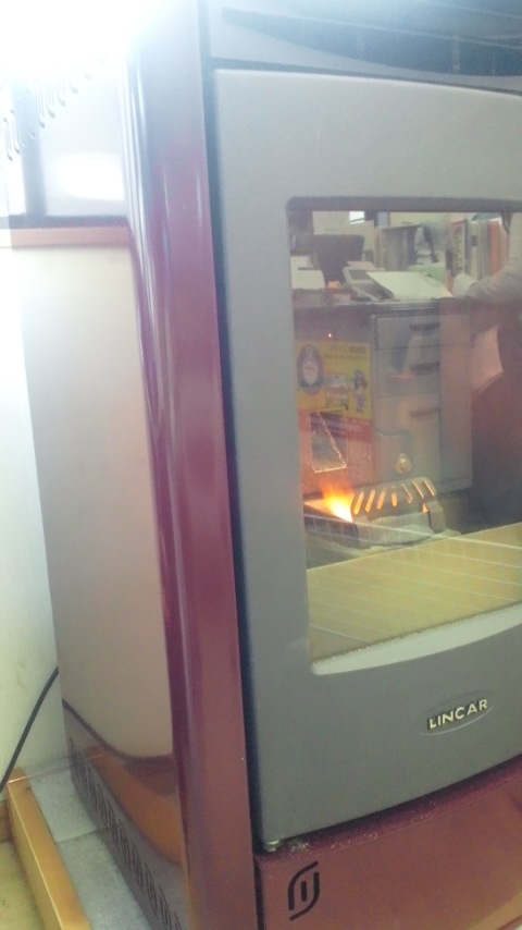 購入した当時は燃えなくて煙ばかり出て、マスクなしにはその部屋で仕事も出来なかったそうである。販売業者や輸入元が再三、メンテナンスにやって来て、やっと点火するようになった。しかし暖かくはならない。手をかざしてみても、吹き出し口がやや温かいだけで、ストーブの用は全くなしていない。匂いも若干ある。